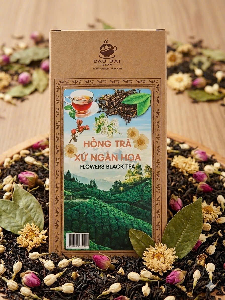 Cau Dat Bean Flower Tea is a refined blend of premium tea leaves and carefully selected natural flowers. Each cup offers a gentle yet captivating sensory experience: